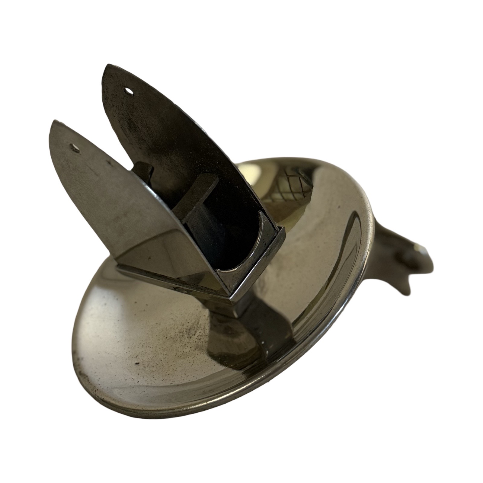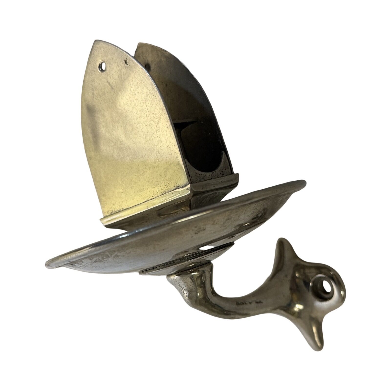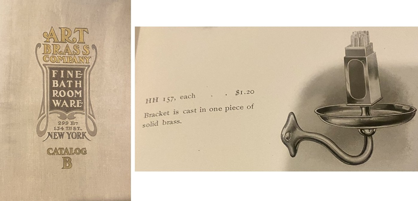 Second City Salvage is offering today this antique c1905 Art Brass NY wall mount match box holder. It is constructed of nickel plated brass and is in excellent condition with no loss to the nickel plating. It is marked Art Brass Co NY. Probably used in a bathroom (when everyone smoked) to light your cigar or cigarette while shaving or primping or in the kitchen to light the stove. A rare piece for sure. It measures 3 1/4″w x 4 1/2″h and will project 3 1/2″ from the wall once installed. Last photo in the listing shows this piece in the 1905 Art Brass NY Fine Bathroom Ware catalog. A great piece to add to your collection!