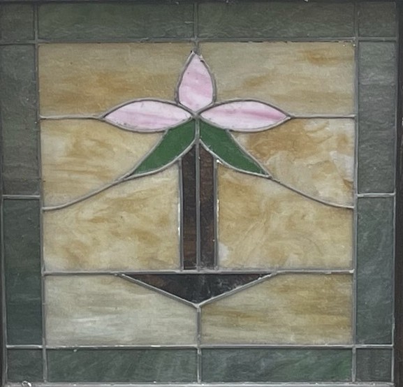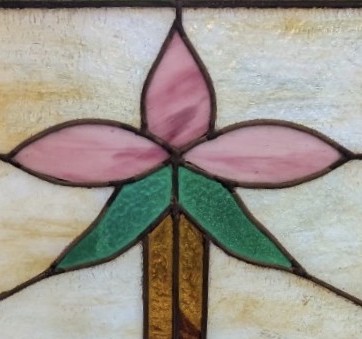 AG1084 Antique c1915 Craftsman Piano Window Green Pink Tulip Restored Quantity!
