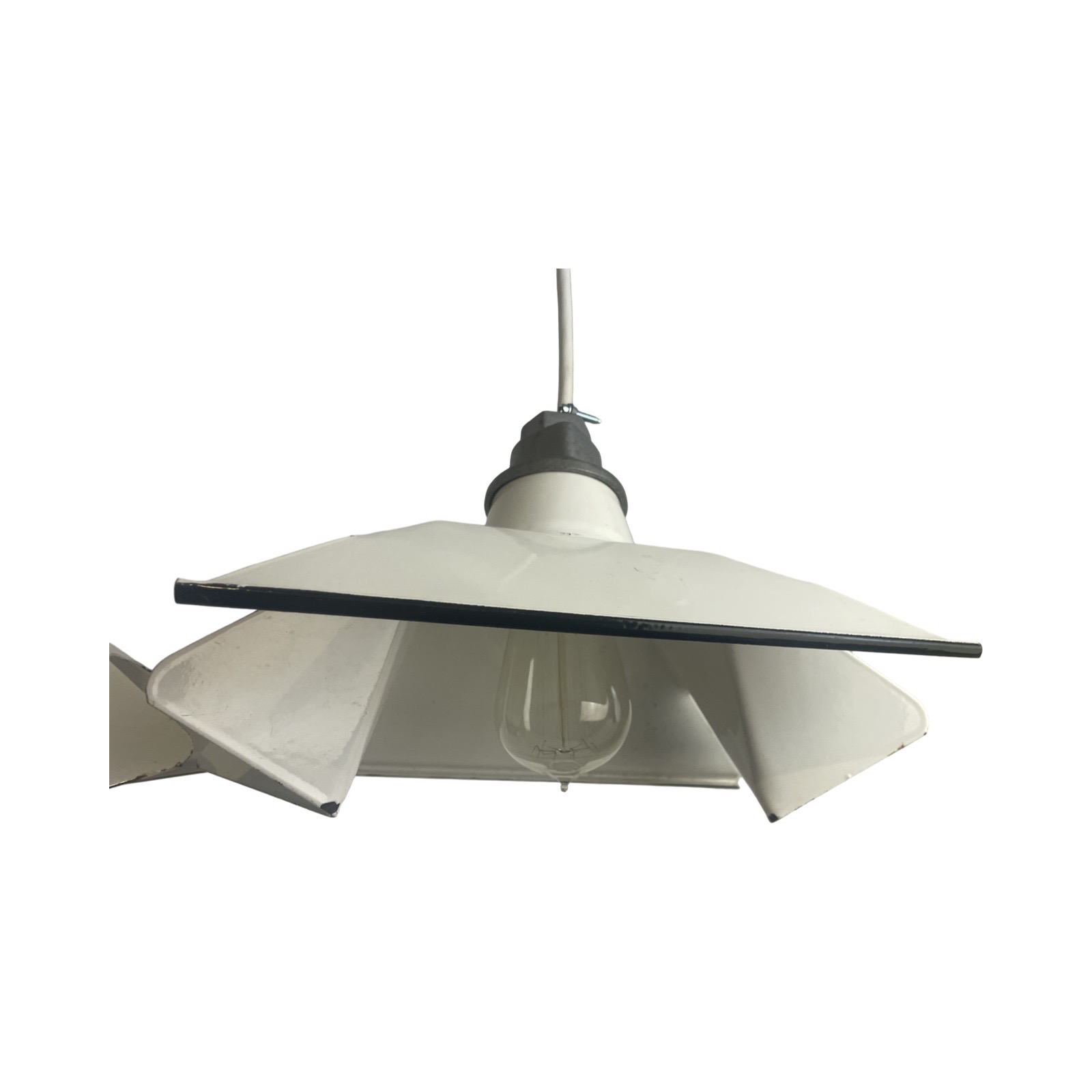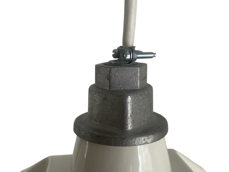 VL1238 Pair Vintage c1930s White Porcelain Enamel Industrial Pendants Restored - Image 7