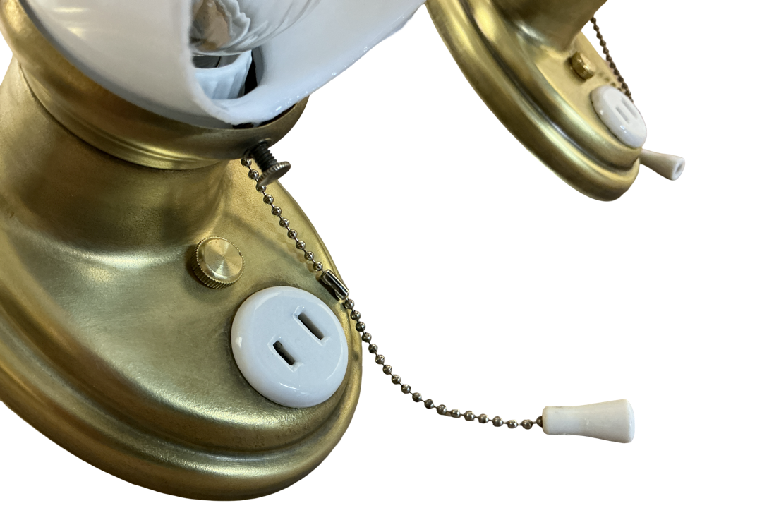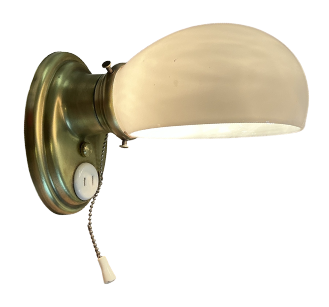 Second City Salvage is offering today this cute pair of vintage c1930s Art Deco brass & porcelain sconces with embossed milk glass shades in mint condition. PERFECT for a bathroom to flank your old medicine cabinet!! These lights have the original porcelain socket covers which are polarized and porcelain pulls that are operational. Sockets are wired for use as well. Each one measures 4″w x 6″h and will project 8″ from the wall once installed. They are priced for the pair and we are not willing to separate them. They each take a standard base bulb, will come to you with updated wiring, will be tested and will include a modern cross bar needed for install. Ready to light up your life!