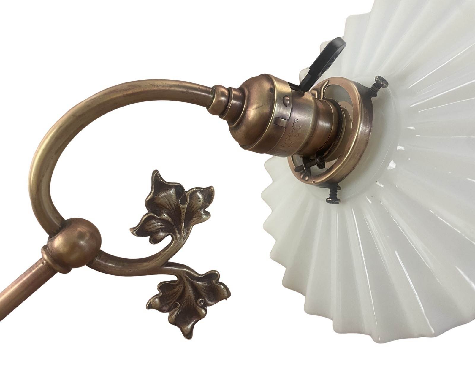 VL1274 Antique Victorian c1900 Brass Copper Embossed Sconce Opal Glass Restored - Image 7