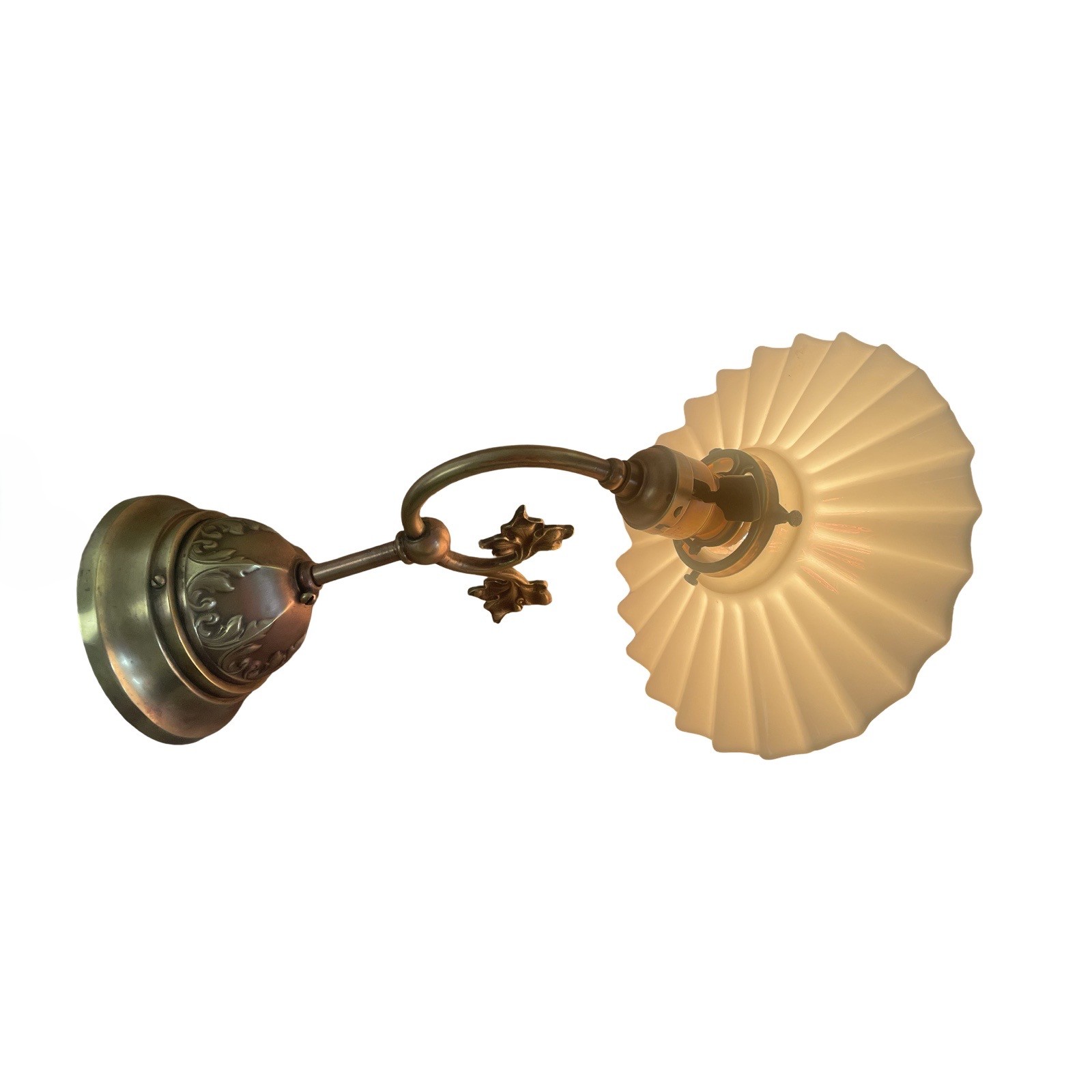 VL1274 Antique Victorian c1900 Brass Copper Embossed Sconce Opal Glass Restored - Image 2