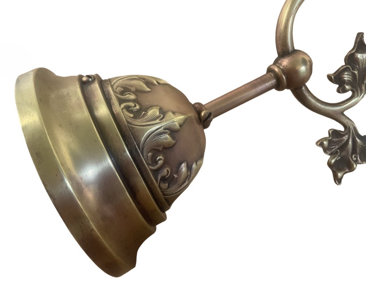 VL1274 Antique Victorian c1900 Brass Copper Embossed Sconce Opal Glass Restored - Image 4