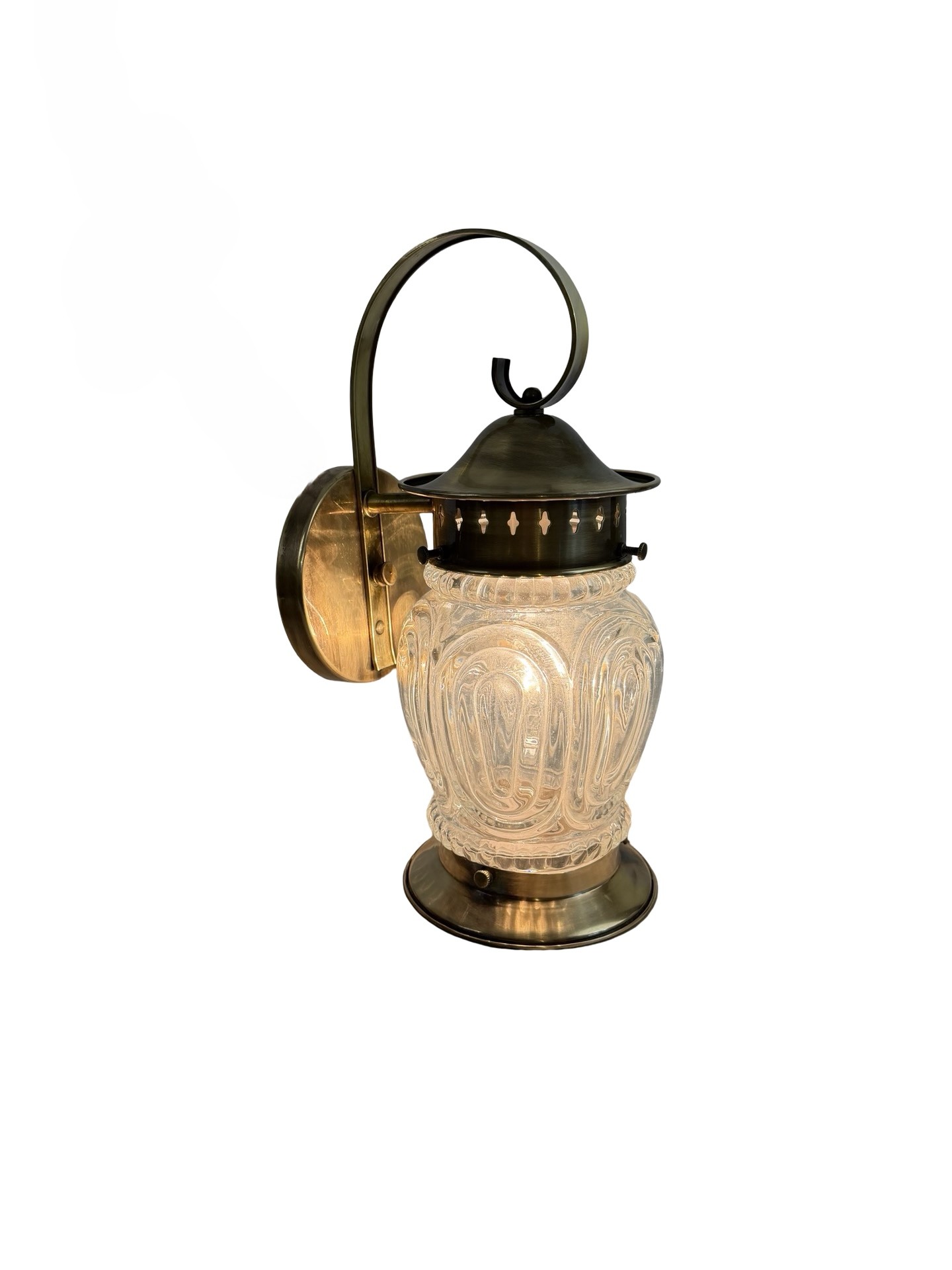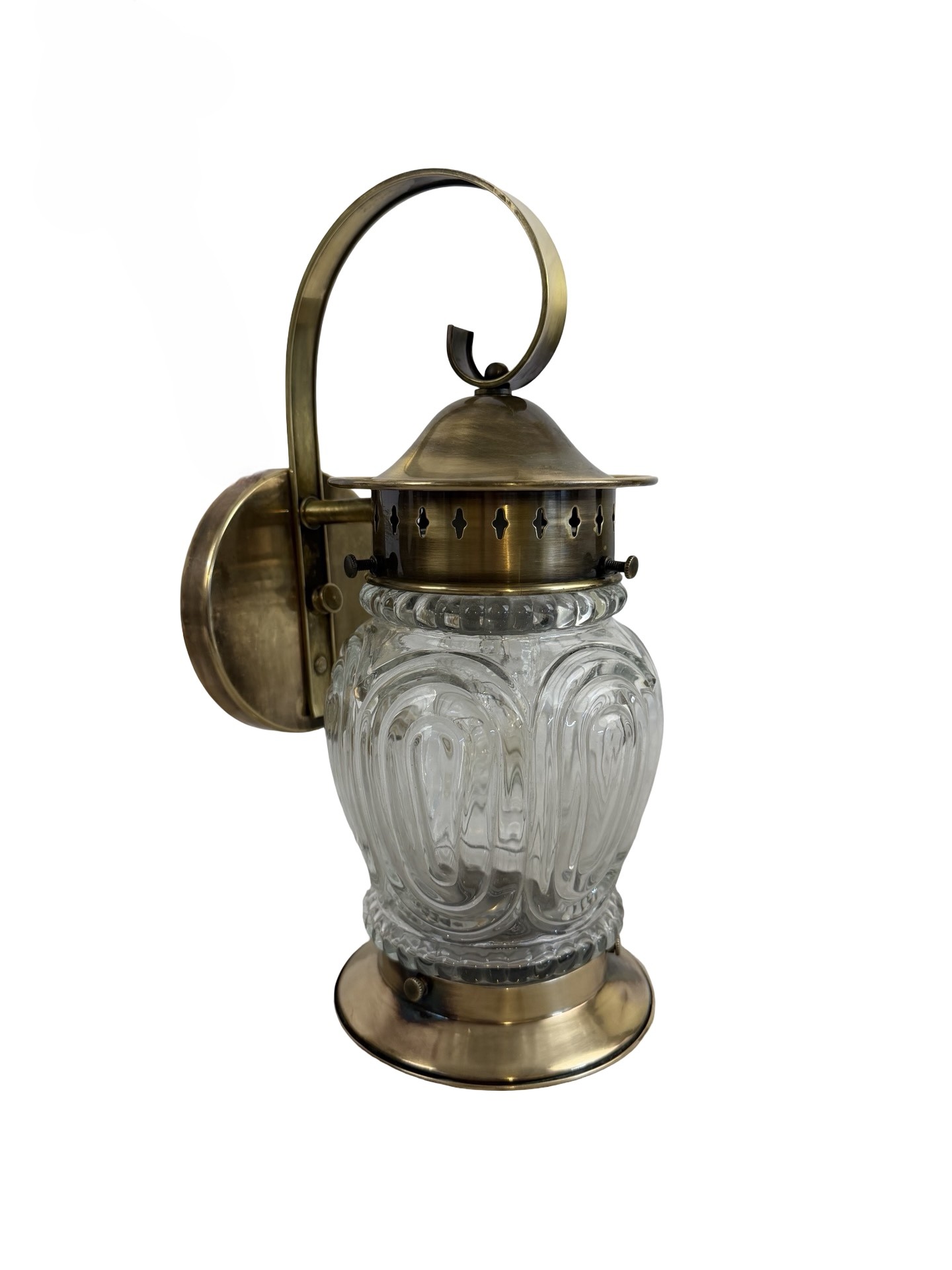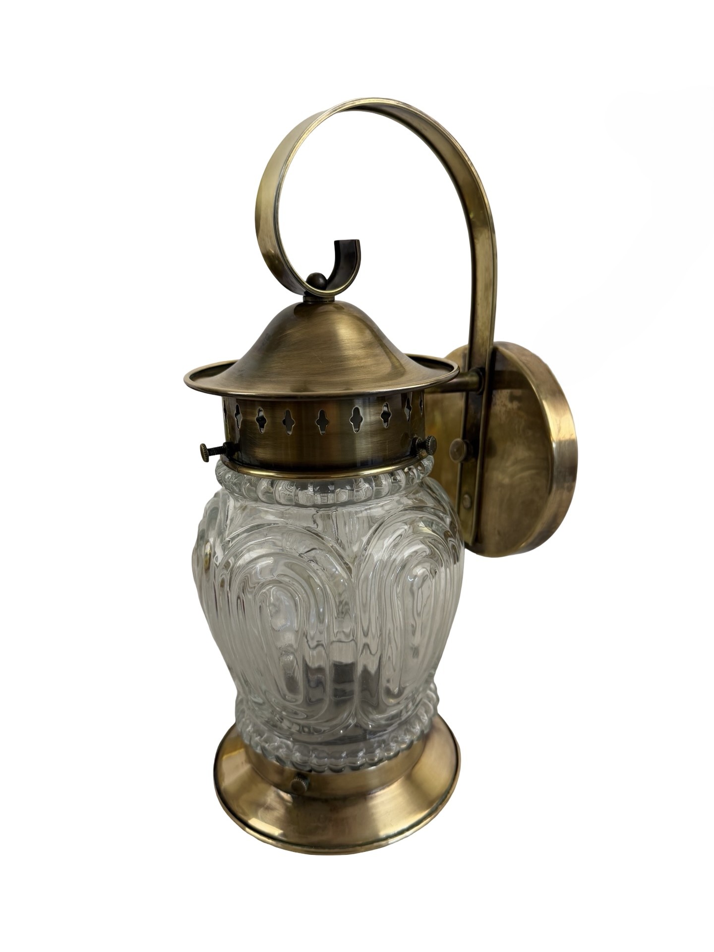VL1299 Vintage c1940s Brass Lantern Sconce Molded Glass Shade Mint Restored