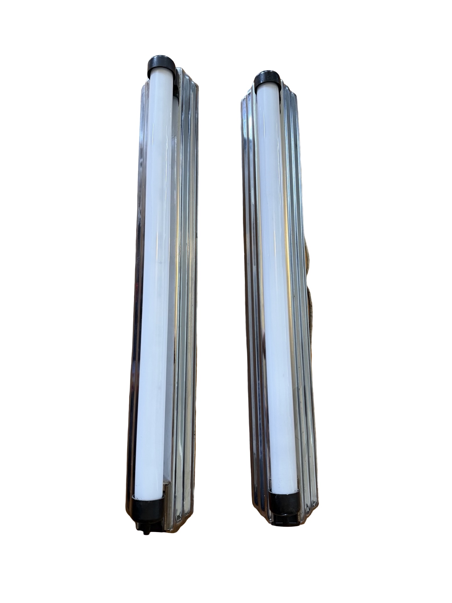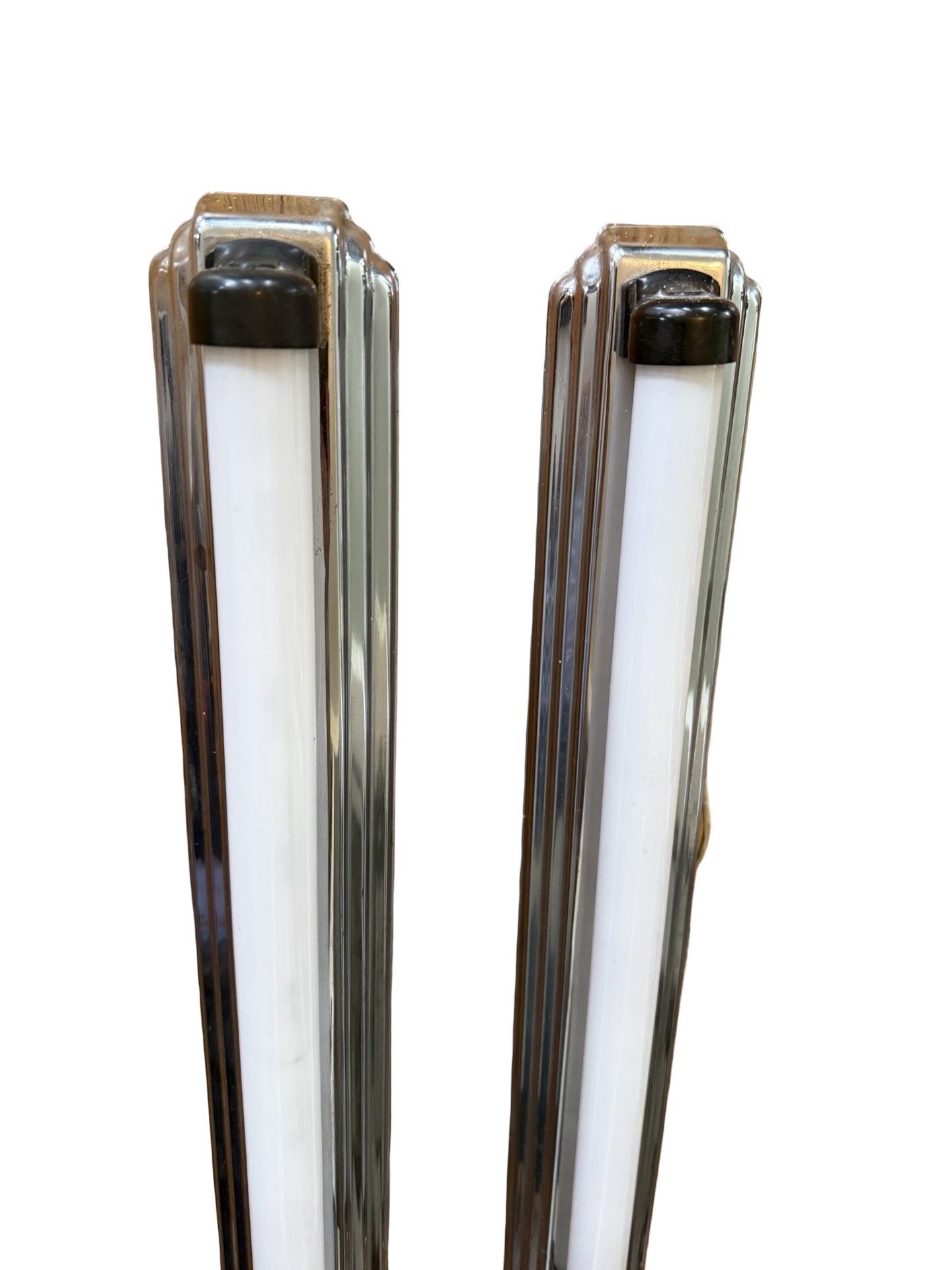 VL1332 Pair Vintage c1940 Lumiline Sconces Retro Machine Age Chrome All Original